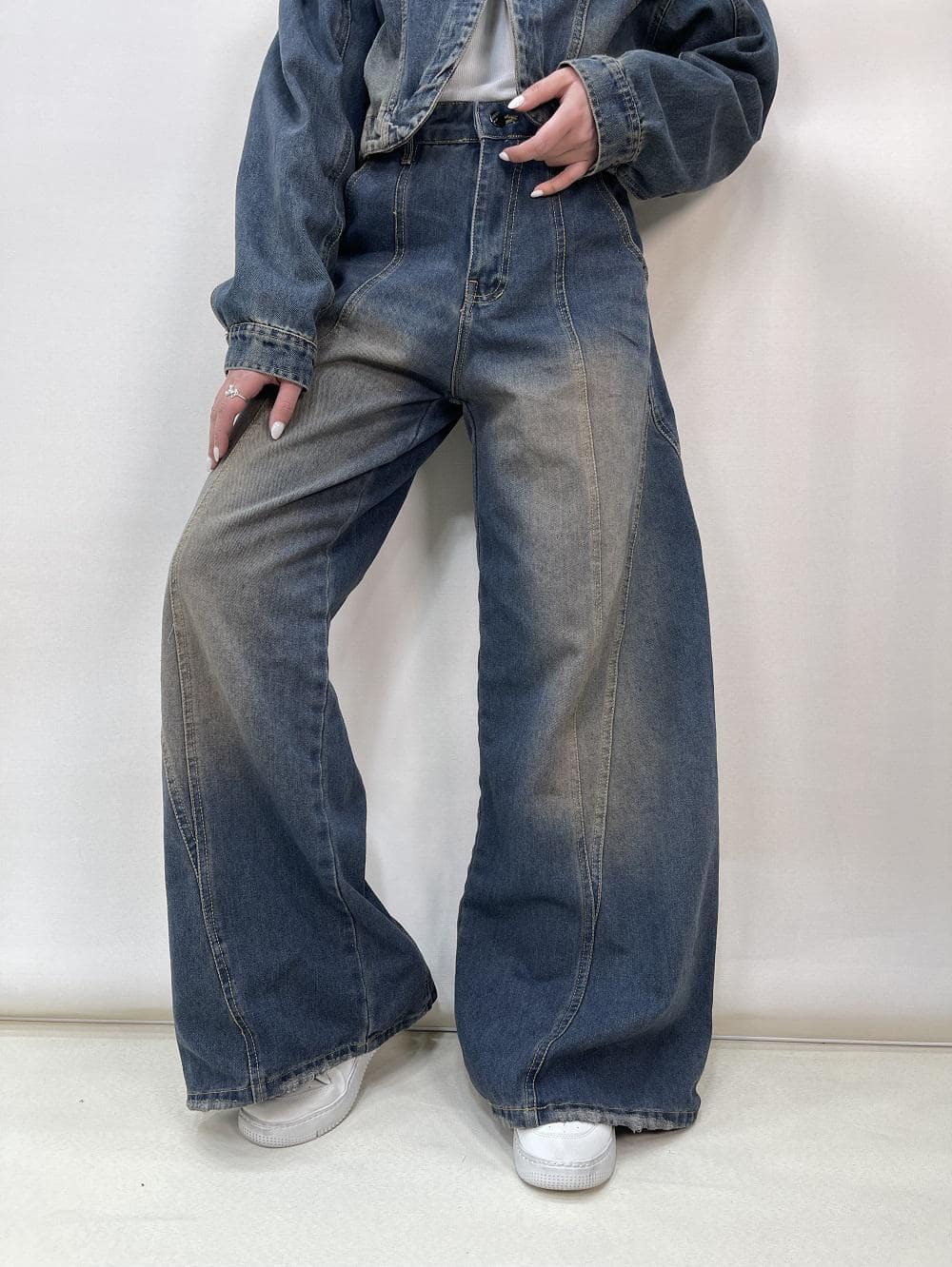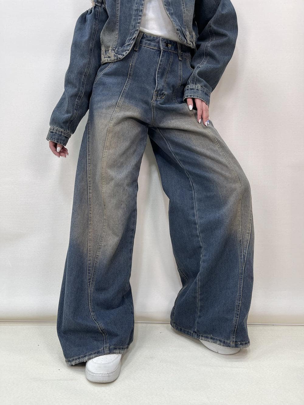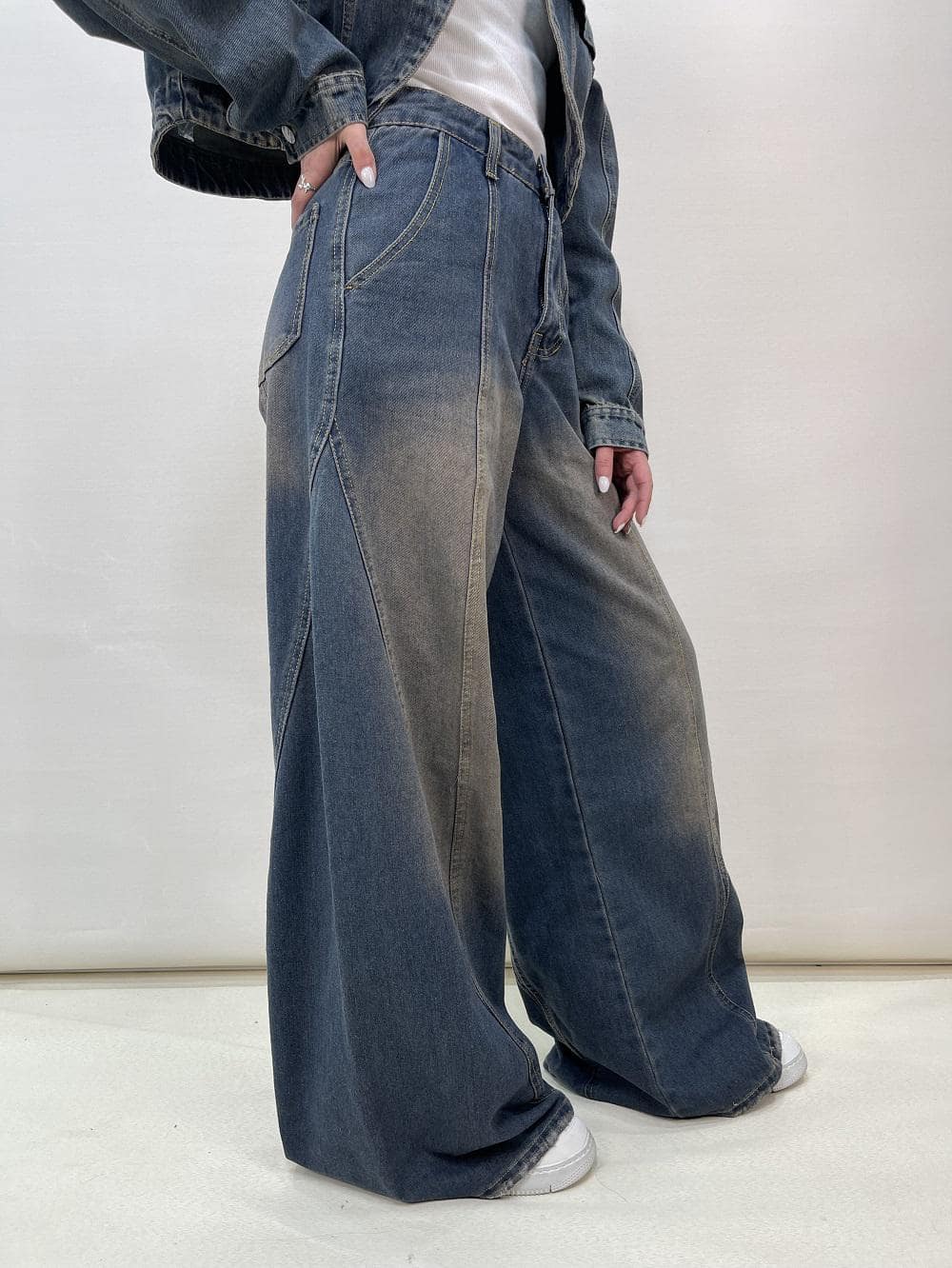 شلوار جین زنانه فول بگ طرحدار کد 5134