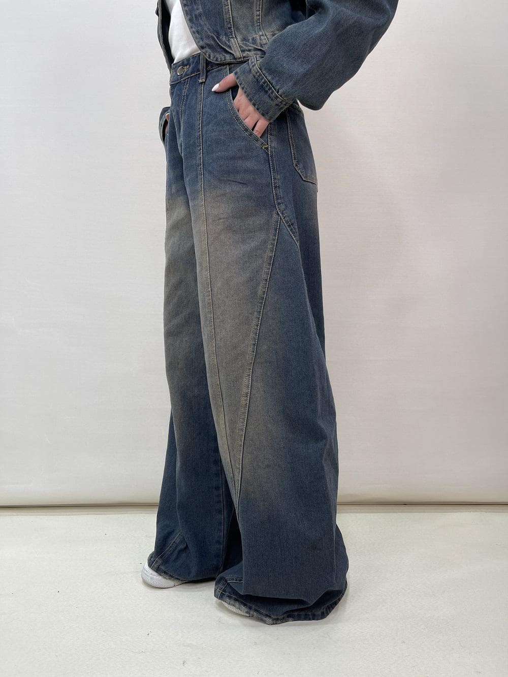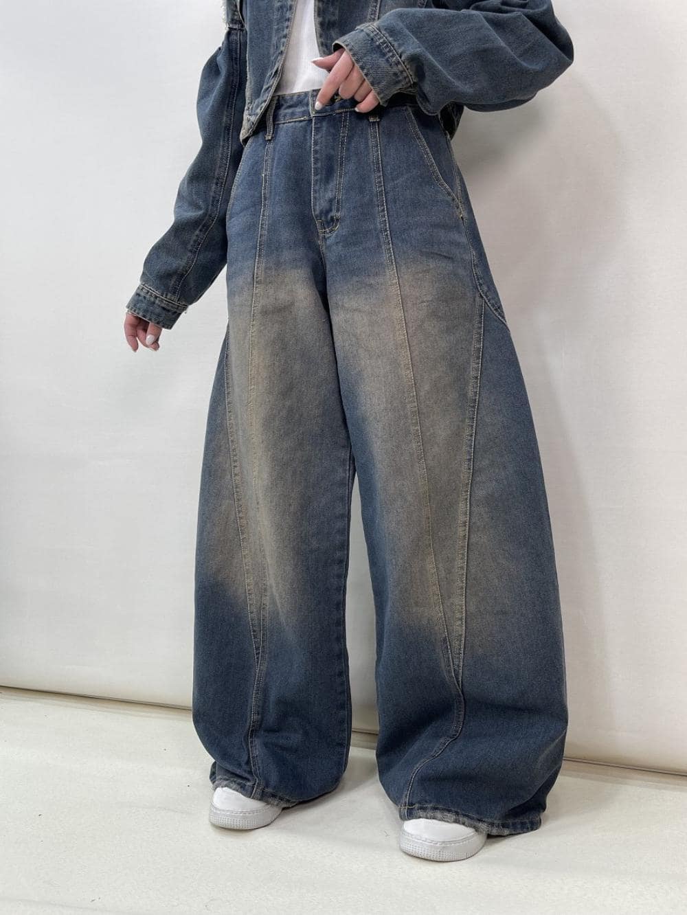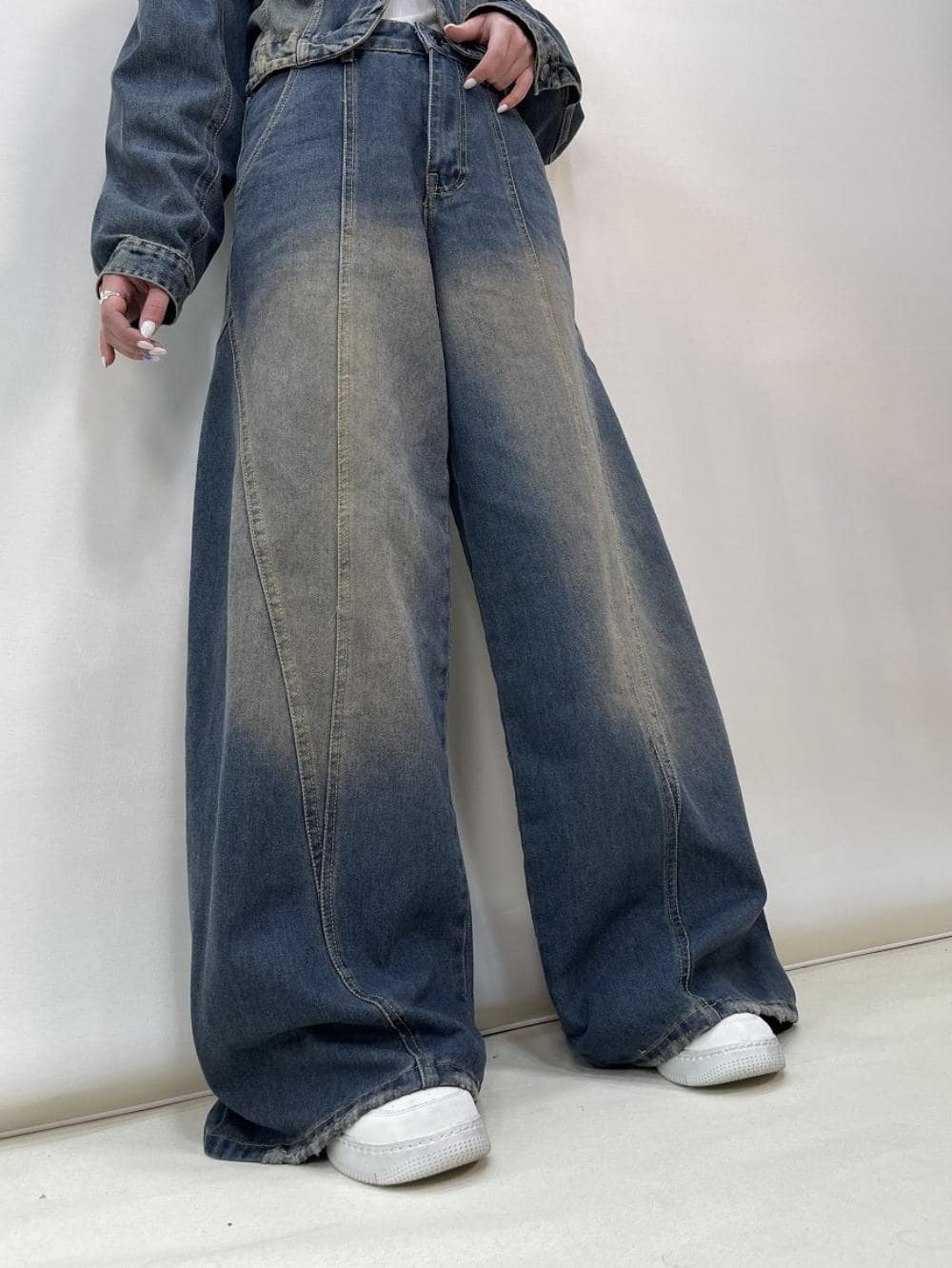 شلوار جین زنانه فول بگ طرحدار کد 5134