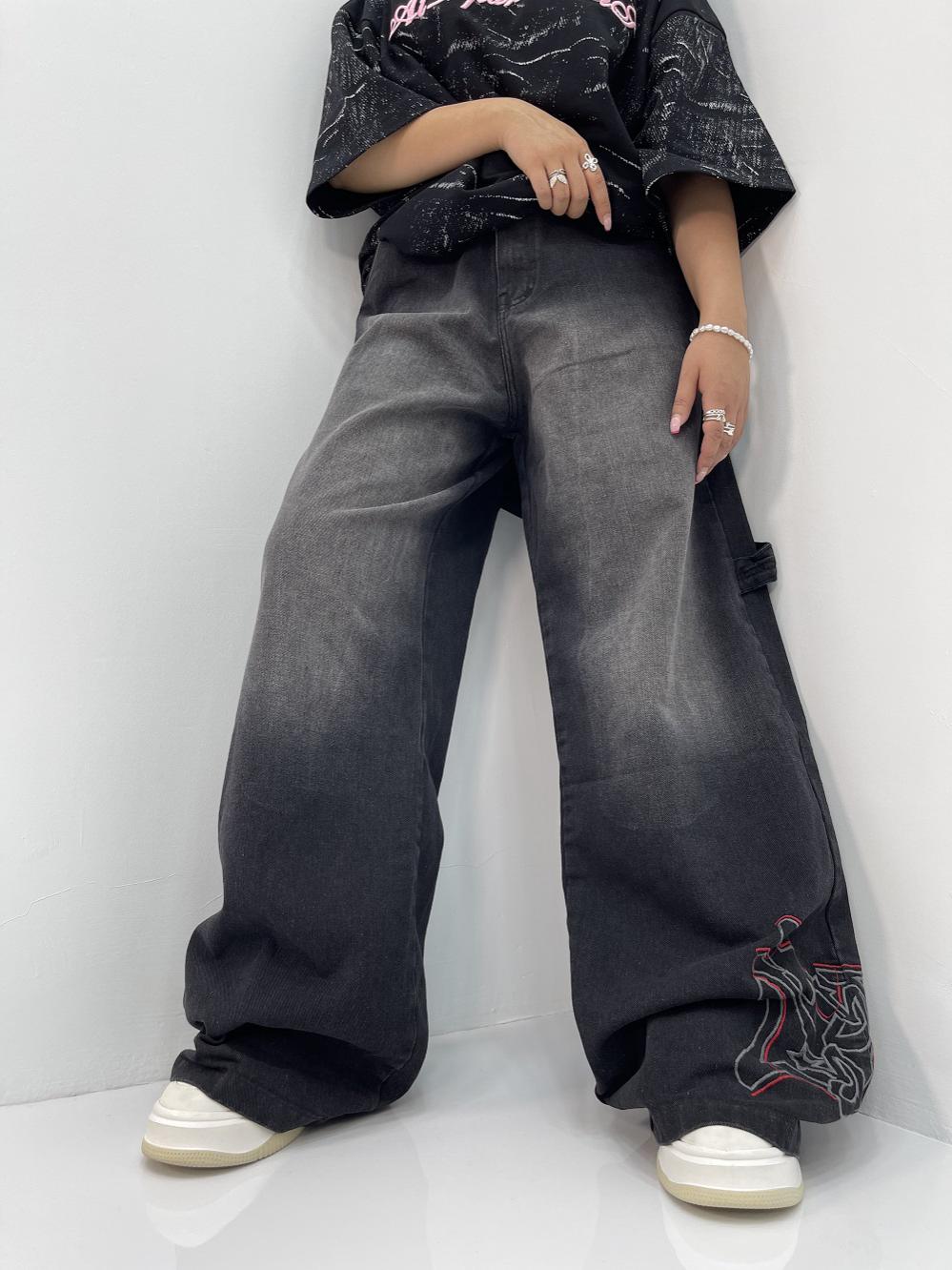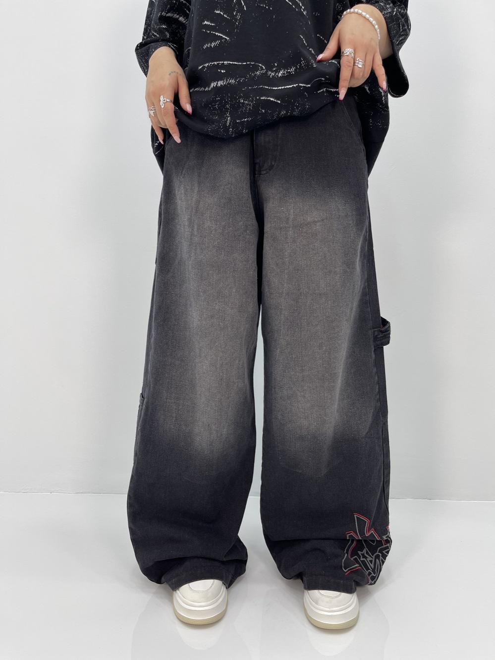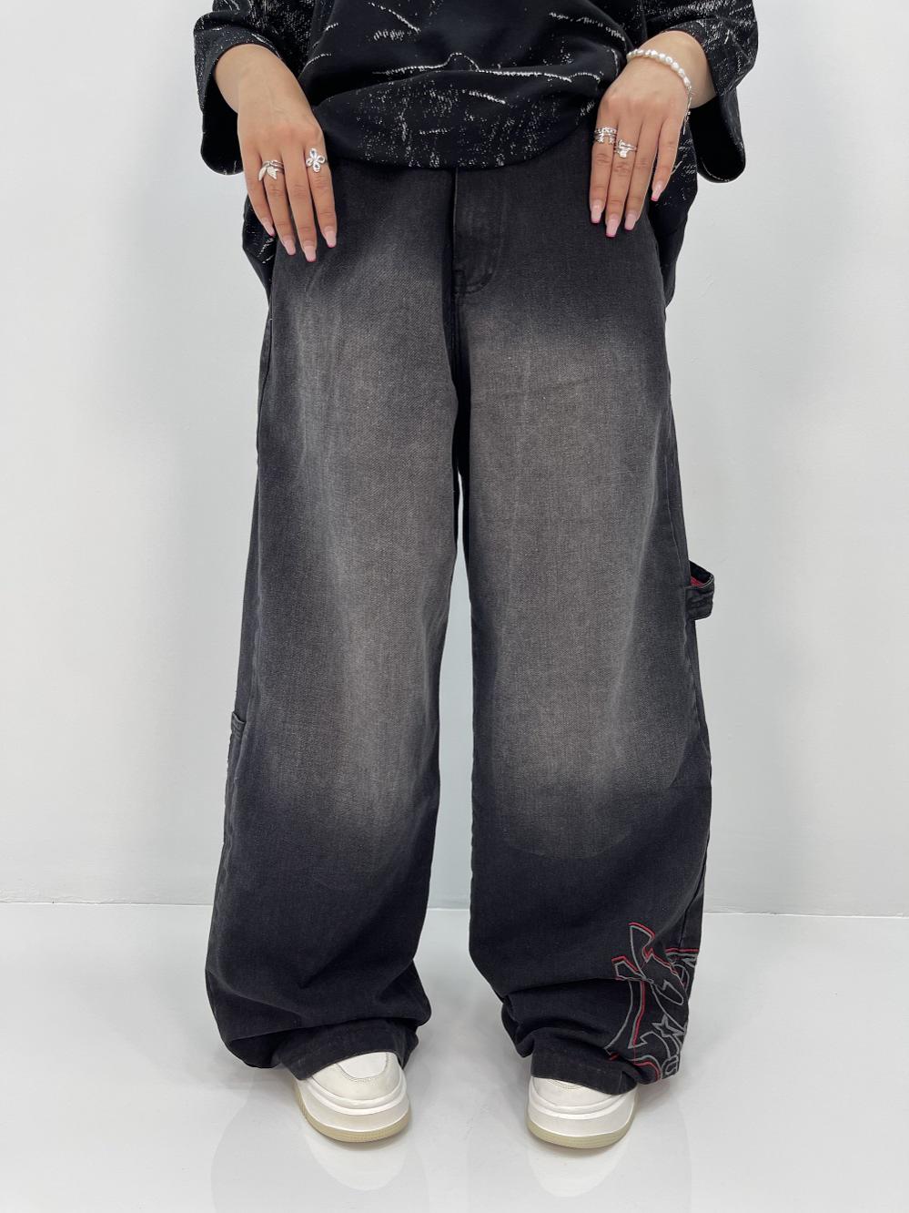 شلوار جین زنانه فول بگ گلدوزی کد 5286