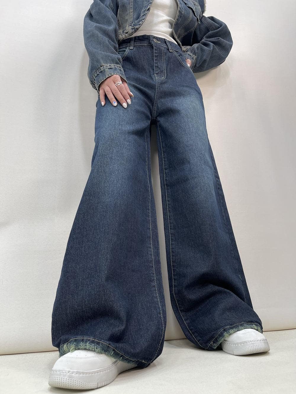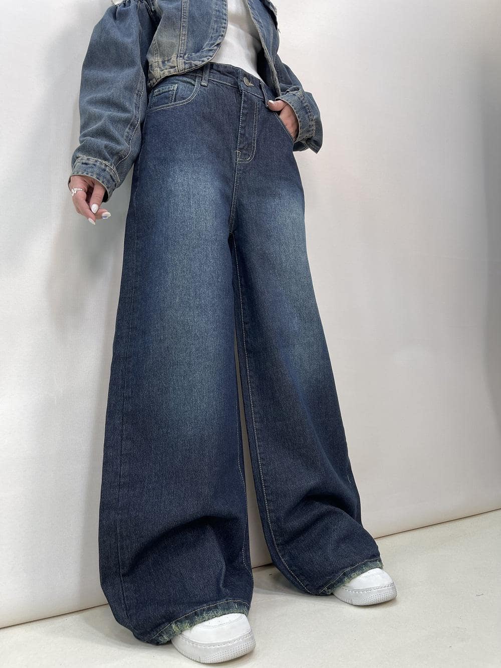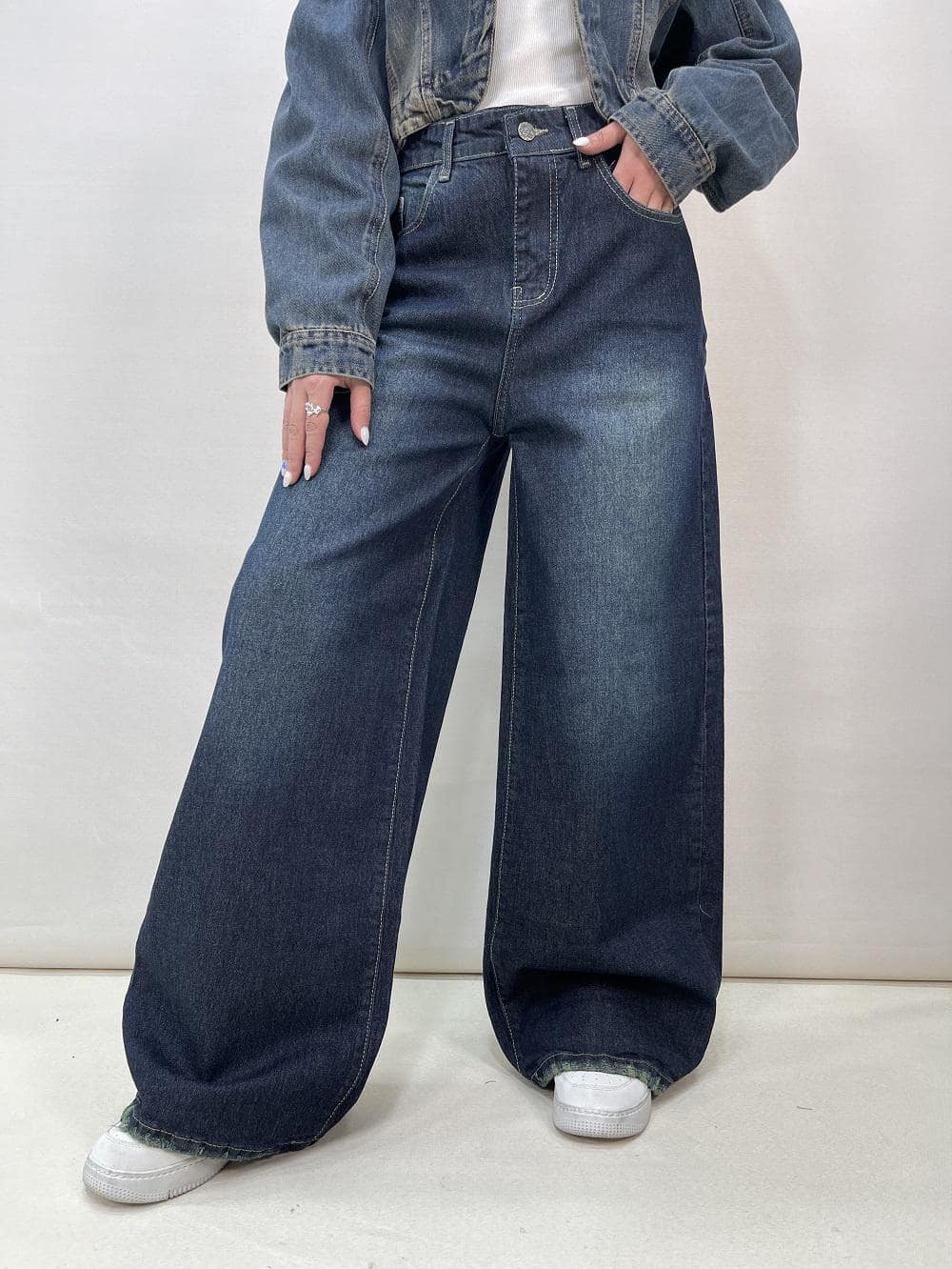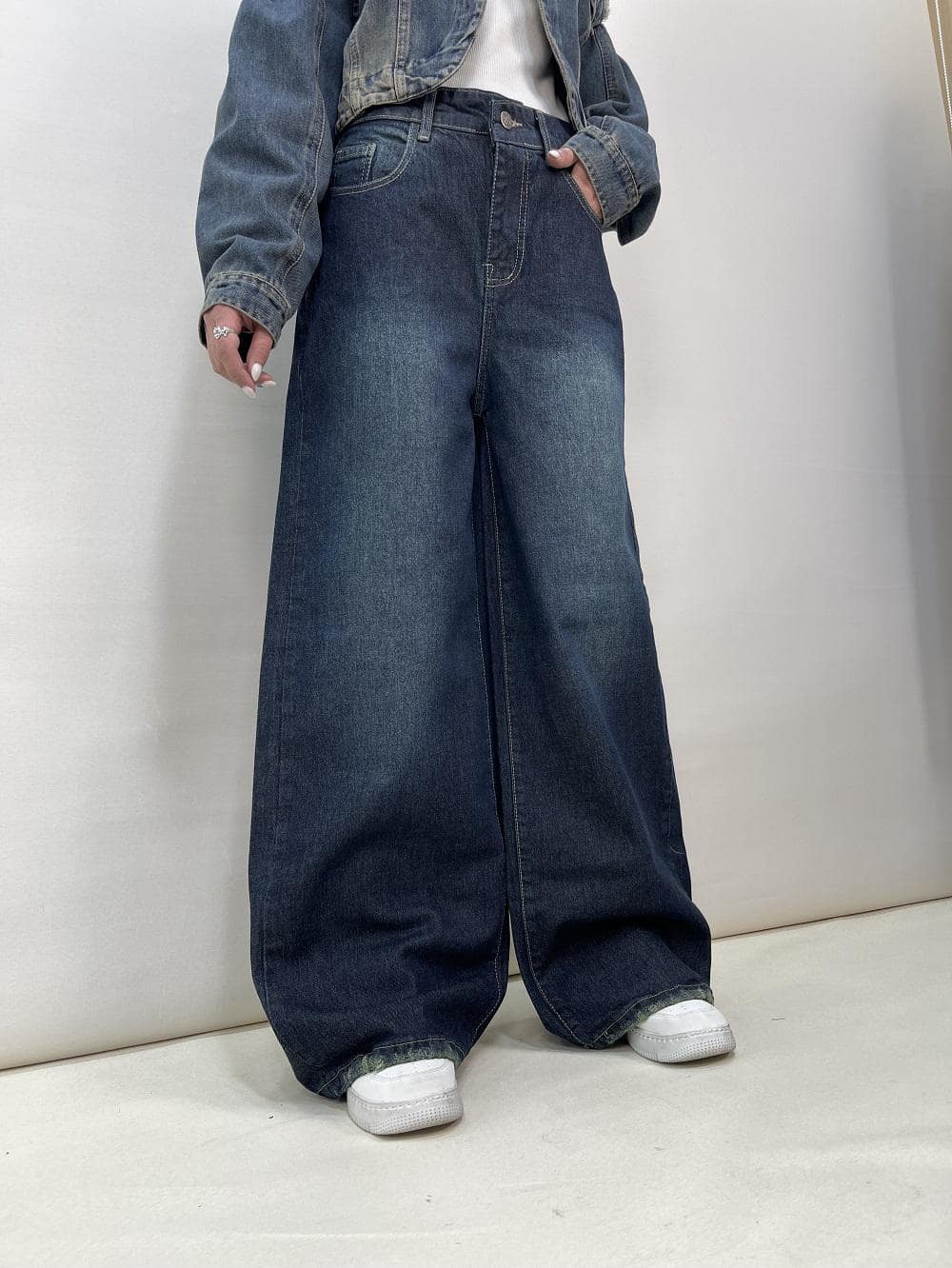 شلوار جین زنانه شافل بگ آبی تیره