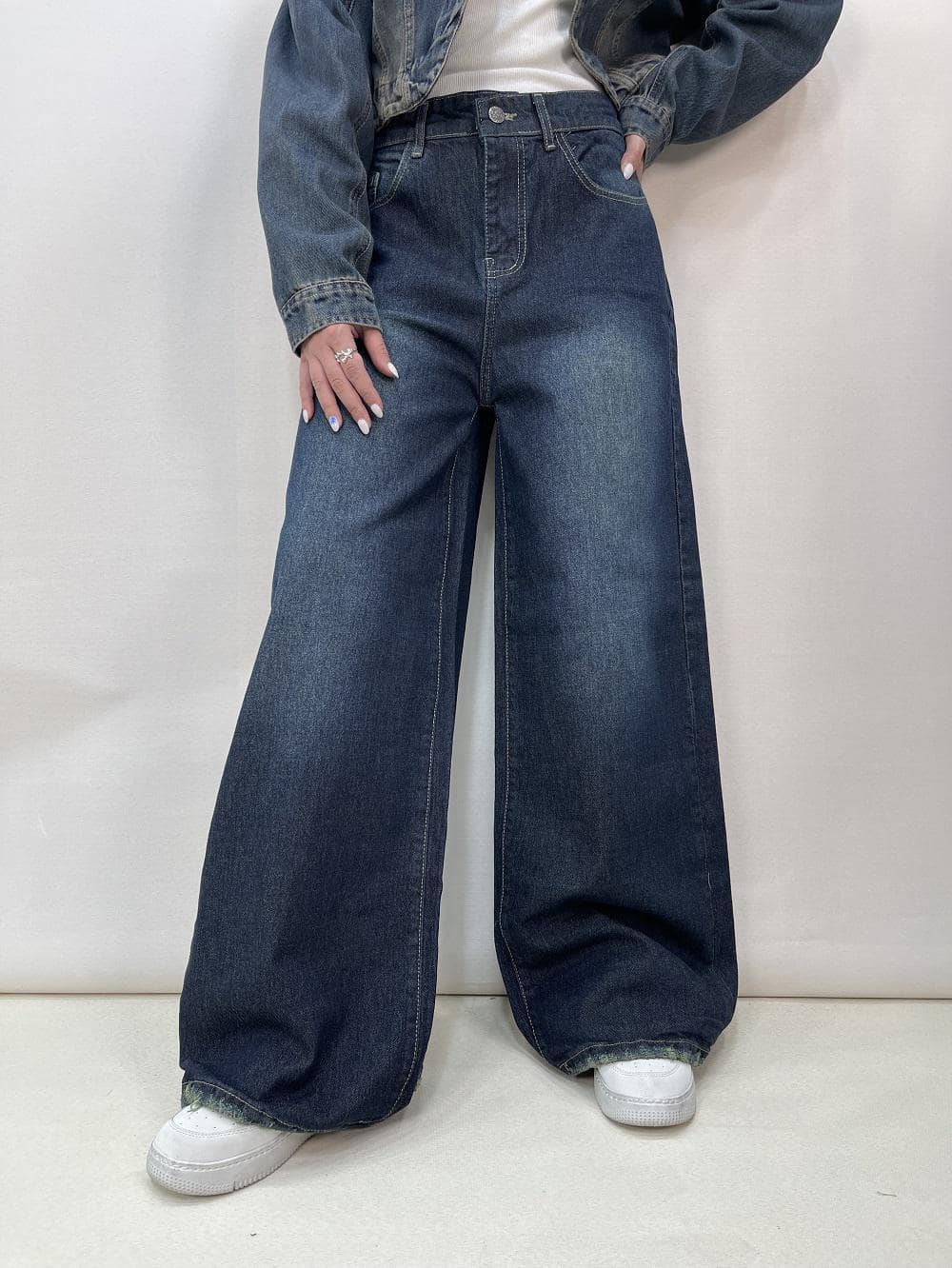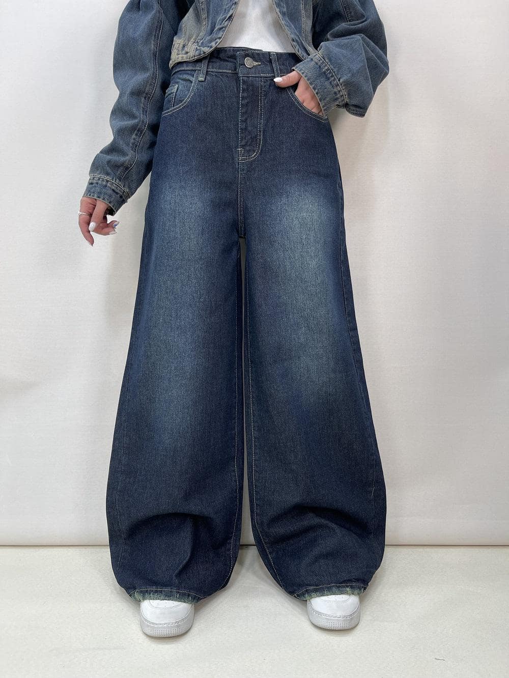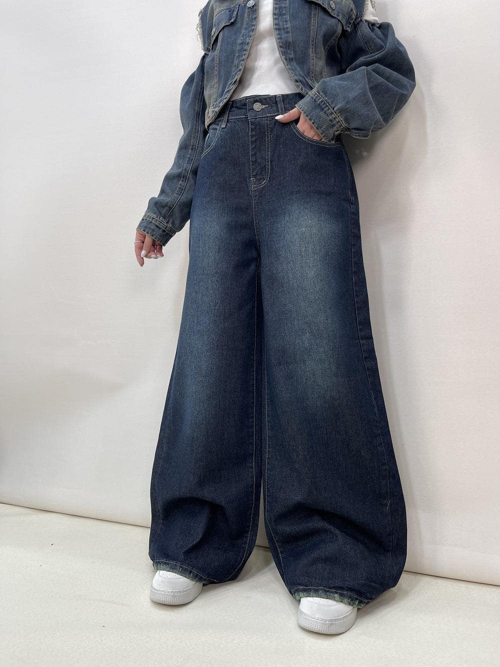 شلوار جین زنانه شافل بگ آبی تیره