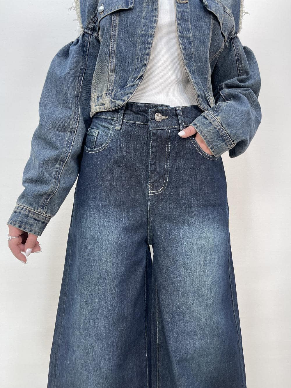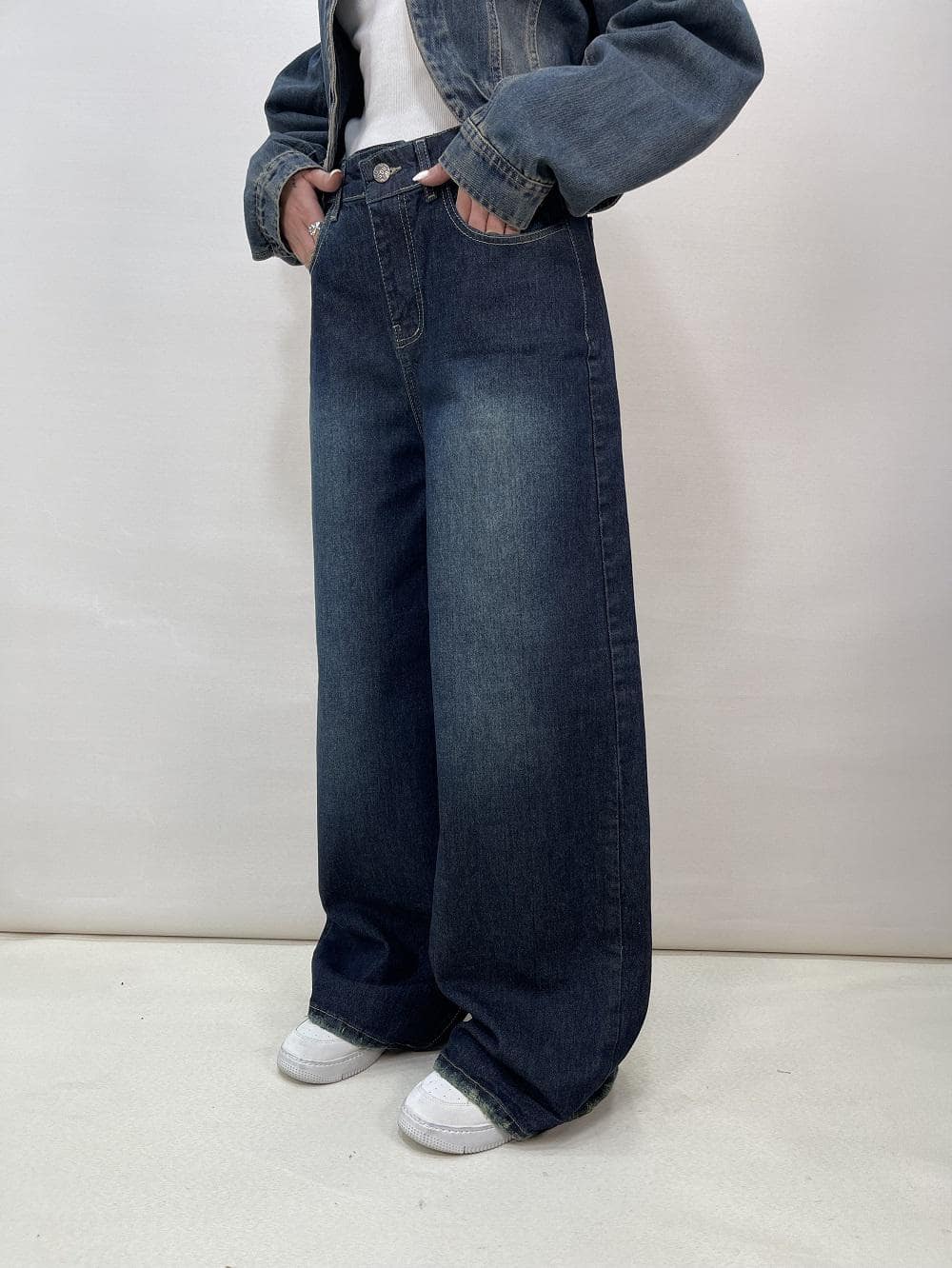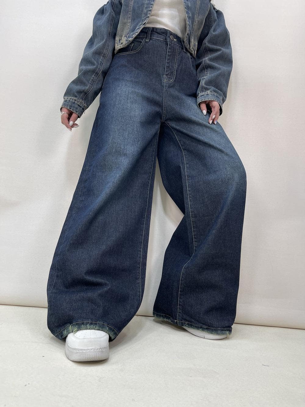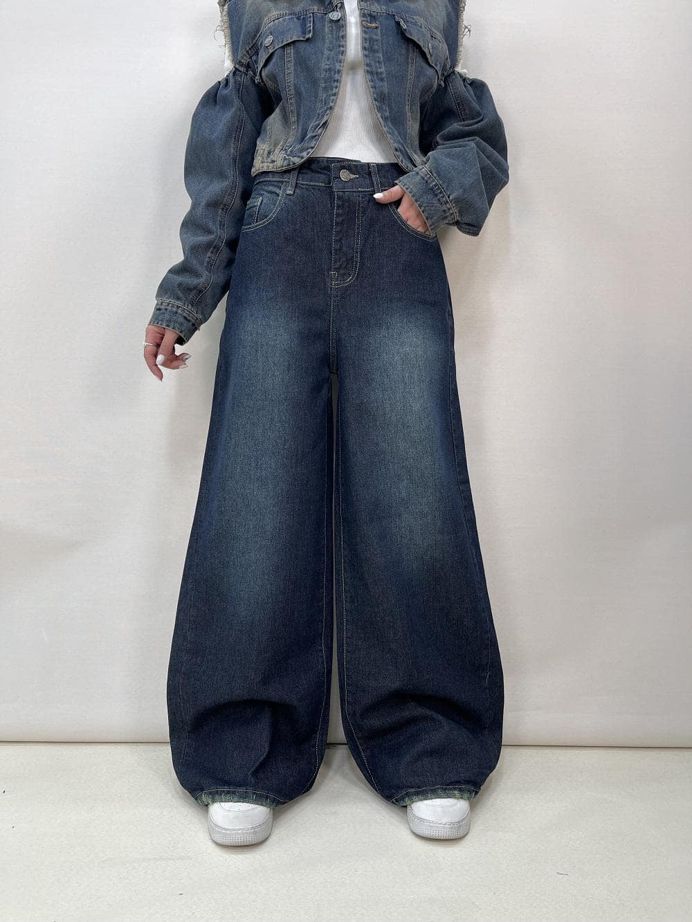 شلوار جین زنانه شافل بگ آبی تیره