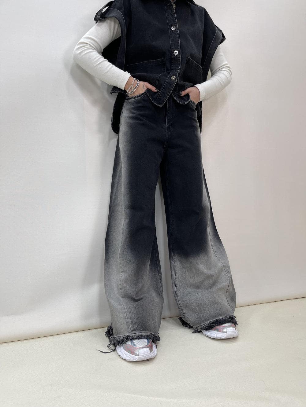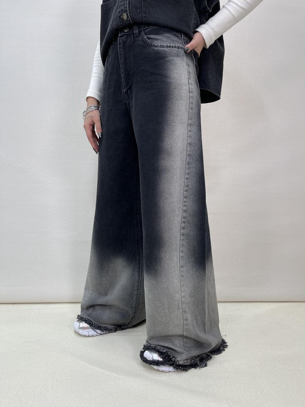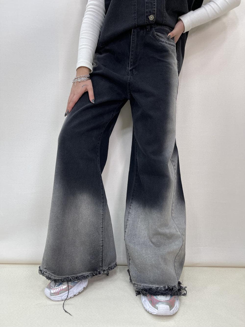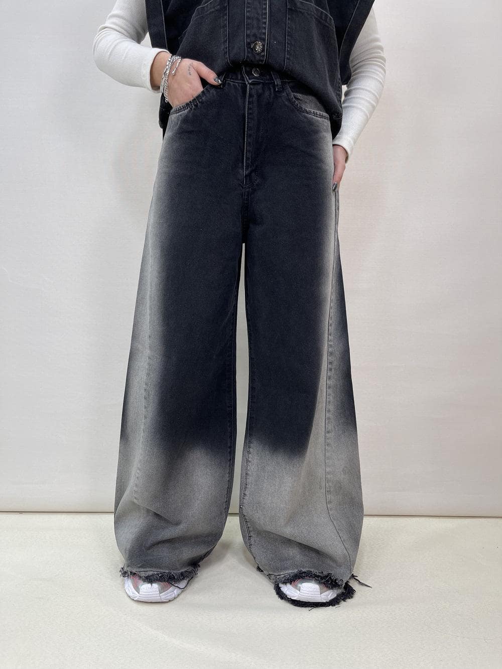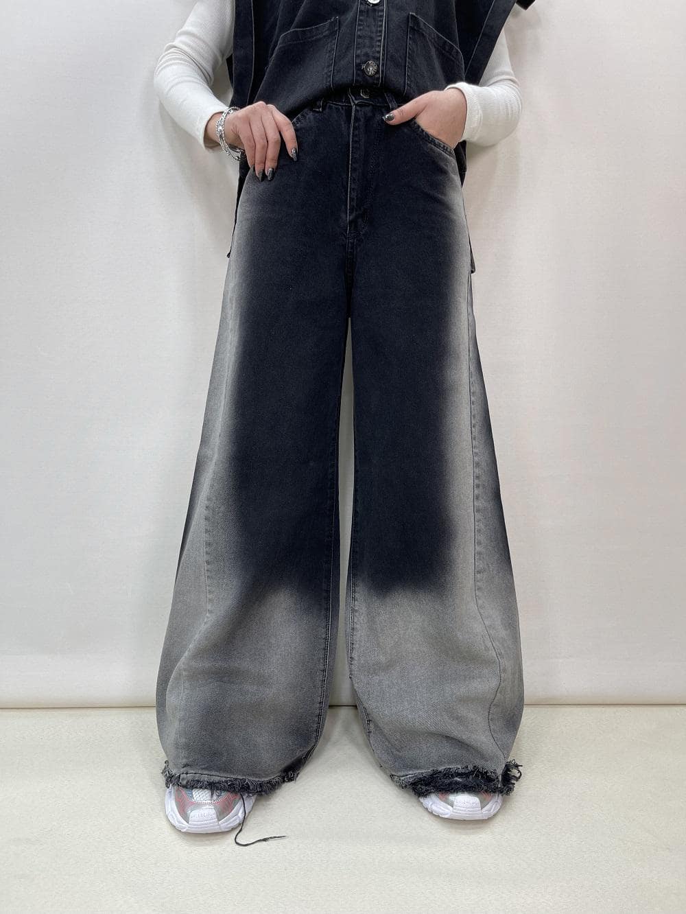 شلوار جین زنانه فول بگ شافل کد 5084