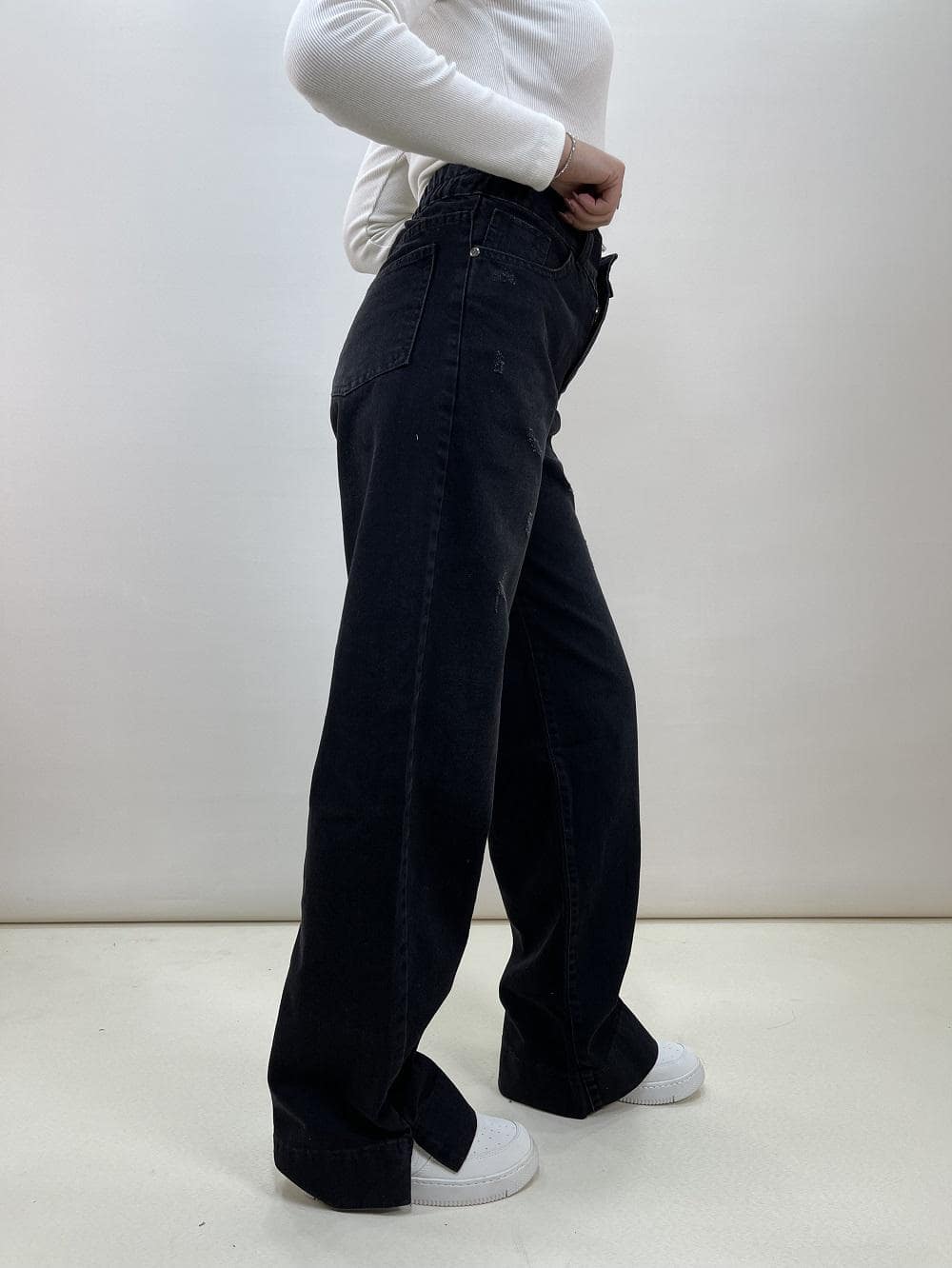 این مدل شلوار جین زنانه از جنس جین باکیفیت با سنگشور تضمینی بدون ضعف رنگ در استفاده های مکرر تولید شده است. این پارچه به گونه ‌ای طراحی شده که حتی پس از شستشوهای مکرر، همچنان نو و شیک به نظر می ‌رسد. رنگ مشکی هیچ ‌وقت از مد نمی‌افتد این رنگ، نه تنها ظاهری شیک و لاکچری به شما می‌ دهد، بلکه با هر استایلی به ‌راحتی ترکیب می ‌شود. قد بلند این شلوار باعث می‌شود که بتوانید آن را با انواع کفش‌ ها، از کتانی گرفته تا بوت یا حتی صندل ‌های پاشنه ‌دار، به زیبایی ست کنید.