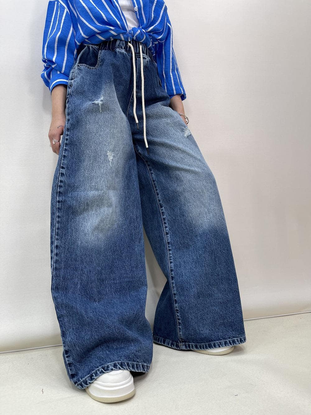 شلوار جین زنانه سوپر بگ کمر کش کد 5165