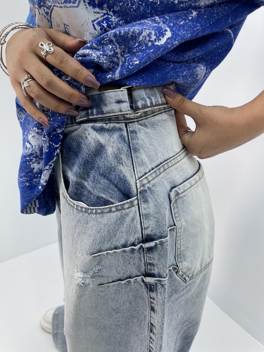 شلوار جین زنانه شافل بگ آبی