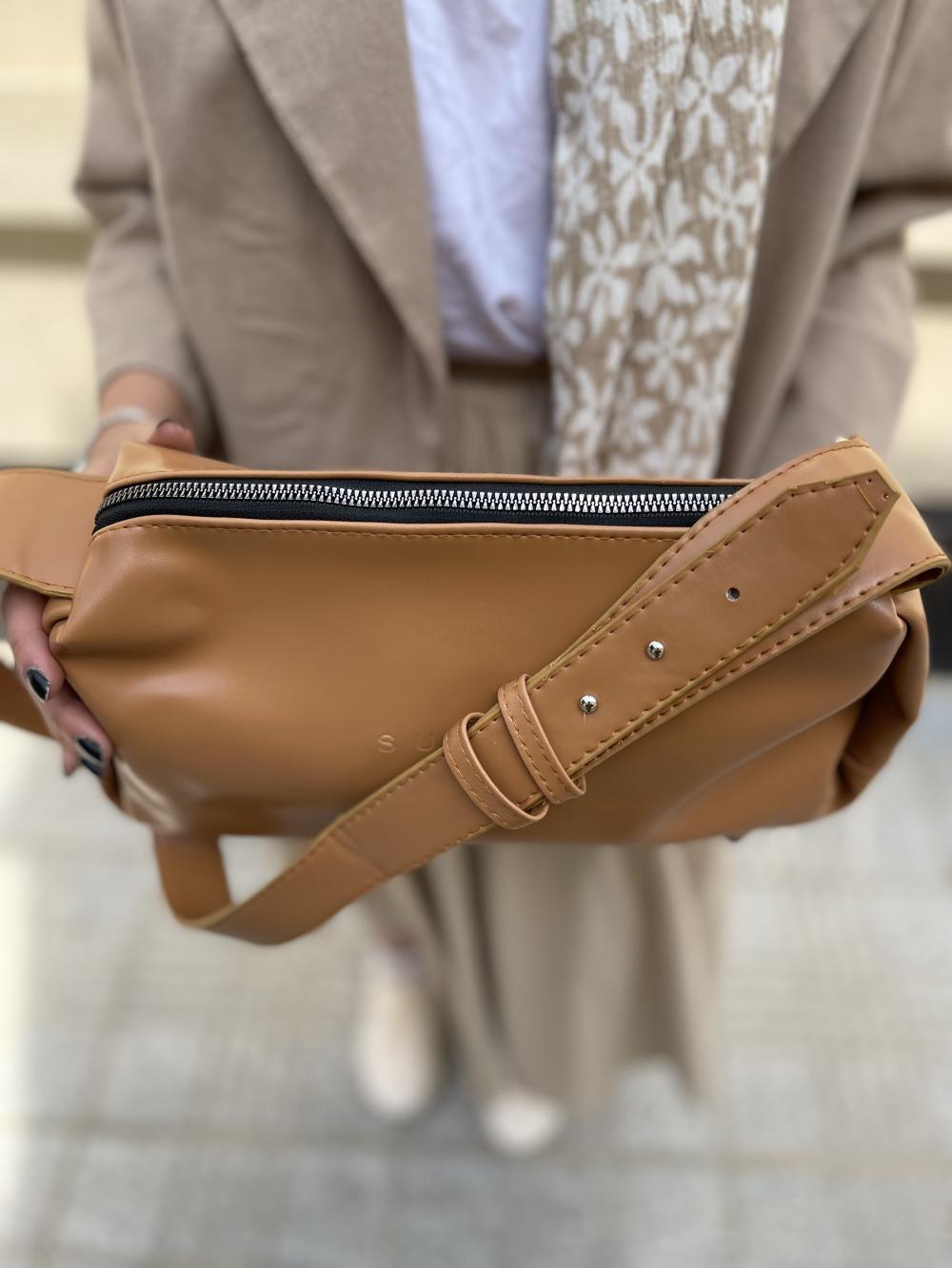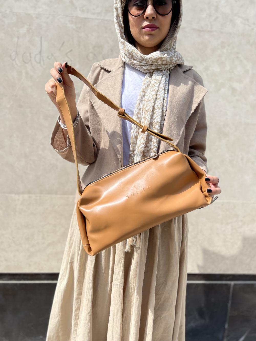 کیف دوشی زنانه چرم رنگ قهوه ای روشن