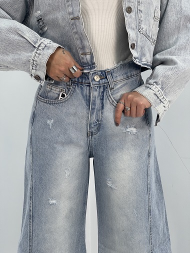 شلوار جین زنانه شافل بگ آبی